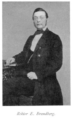 Rektor BRANDBERG. Generationer av Noragossar har gått under hans färla och aldrig blevo någon av hans disciplar kuggad vid inträdesprövning i Örebro skola. B. var en utomordentligt skicklig lärare, men högst originell. Han hade svaga ögon och satt därför ständigt i kyrkan med uppspänd, blårutig paraply. Han höll den bästa disciplin, trots att skolgossarna alltid voro hans förtrogna i de husliga angelägenheterna. Han t ex anförtrodde pojkarna: